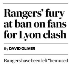 Rangers' fury at ban on fans for Lyon clash